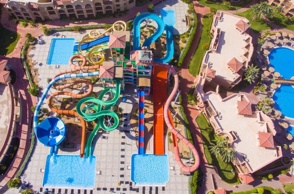The 5-star Charmillion Gardens Aqua Park features a large outdoor pool surrounded by relaxing lounge chairs, with access to a private beach...